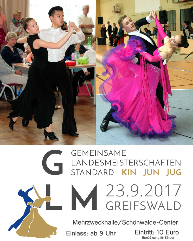 Nur noch eine Woche – dann findet in Greifswald die GLM statt! Die Vorbereitungen sind weitgehend abgeschlossen. Wir freuen uns auf viele Paare und Gäste sowie spannende Turniere. Alle Einzelheiten zur GLM gibt es auf unserer Homepage im Sonderbereich „GLM 2017“.